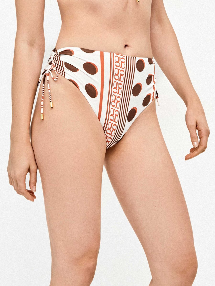 Top bikini bandeau con aro y foam. Tirantes multiposición. Estampado monogram que combina lunares, rayas y logo gisela. Combínalo con su braguita bikini a juego