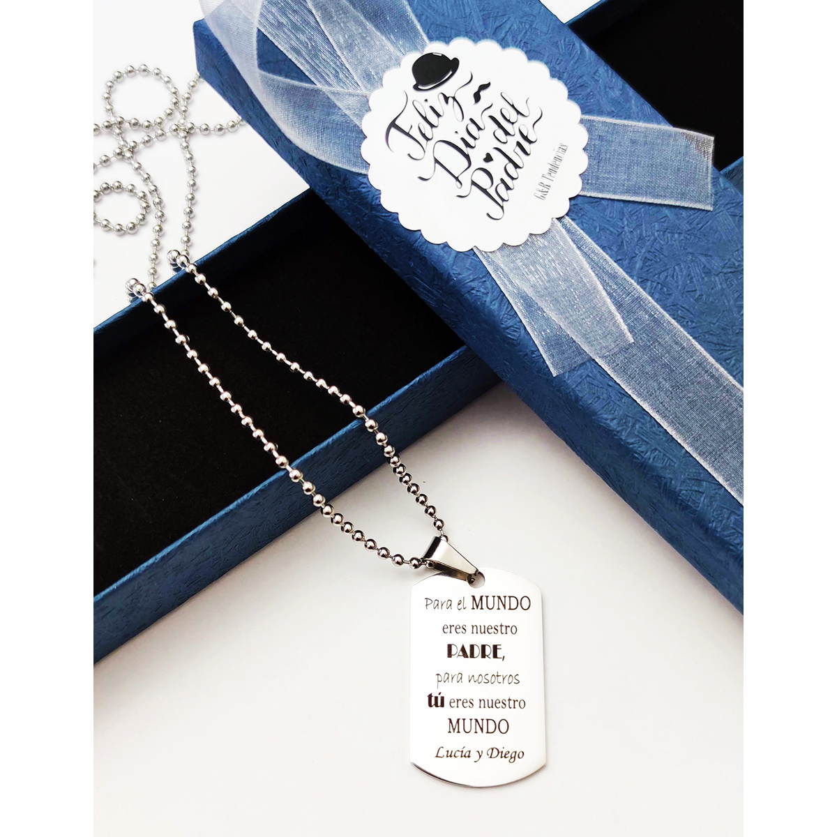 COLLAR PERSONALIZADO DE ACERO ESTILO CHAPA MILITAR PARA PAPÁ “PARA EL MUNDO ERES NUESTRO PADRE, PARA NOSOTROS TÚ ERES NUESTRO MUNDO”