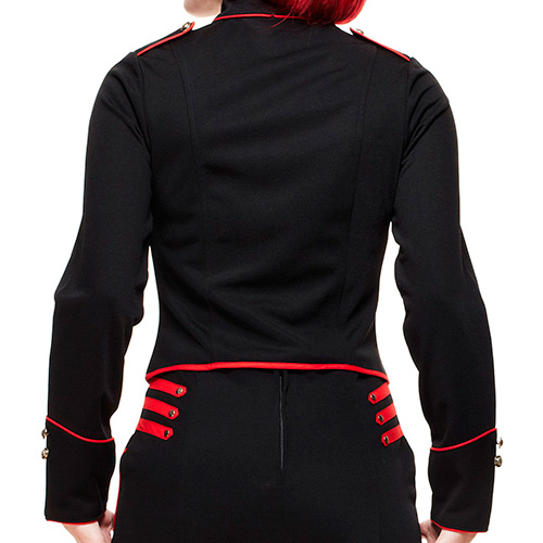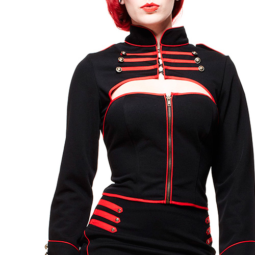 Márcate un tanto en originalidad con esta chaqueta steampunk en negro y rojo.