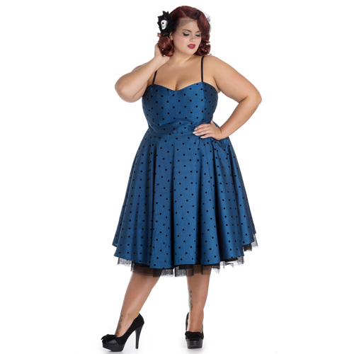 color azul noche. Realizado en tafetán con lunares negros en terciopelo negro.