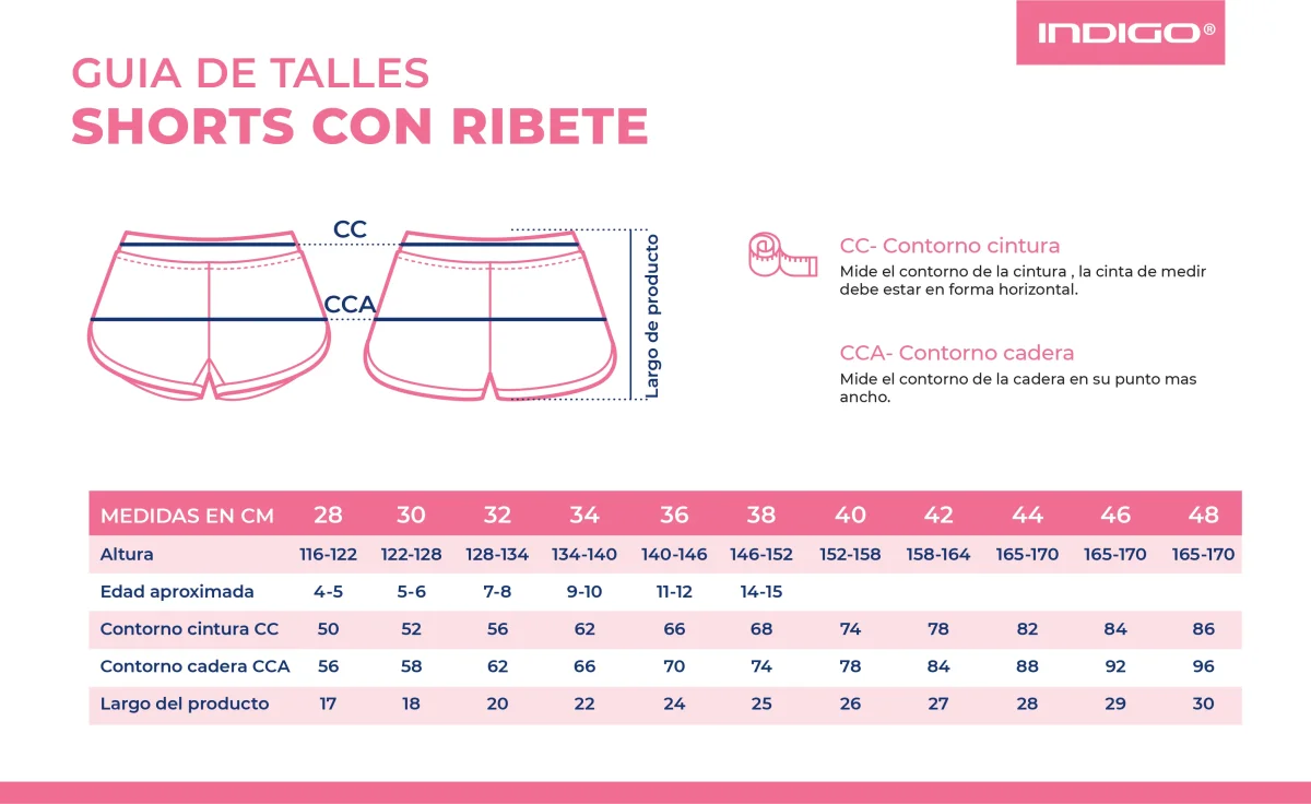 El short de gimnasia para niñas con ribete INDIGO es ideal para gimnasia y baile, se estira perfectamente, no restringe los movimientos y se asienta perfectamente sobre la figura.