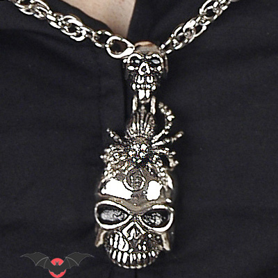 Este colgante unisex de calavera y araña con cadena es el complemento ideal.