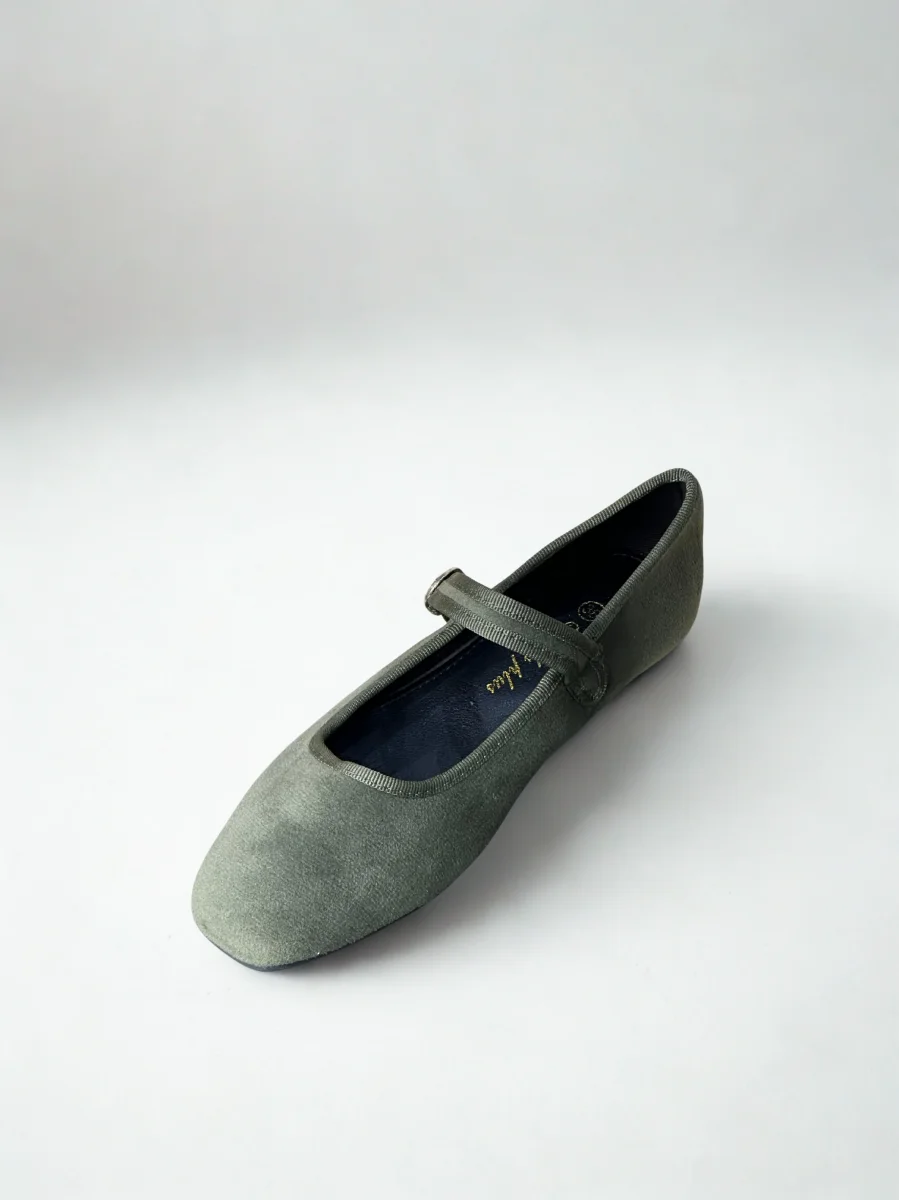 Zapato plano estilo bailarina. Cinta en empeine y cierre cinturón. Suela plana, cómoda y flexible. Acabado en punta cuadrada y efecto antelina. Disponible en color wine, green, negro, grey/wine, blue y brown.